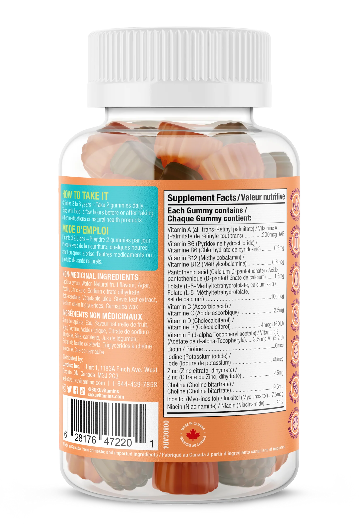 - Un mélange puissant de 14 vitamines et minéraux essentiels dans de délicieuses gommes que les enfants adoreront.