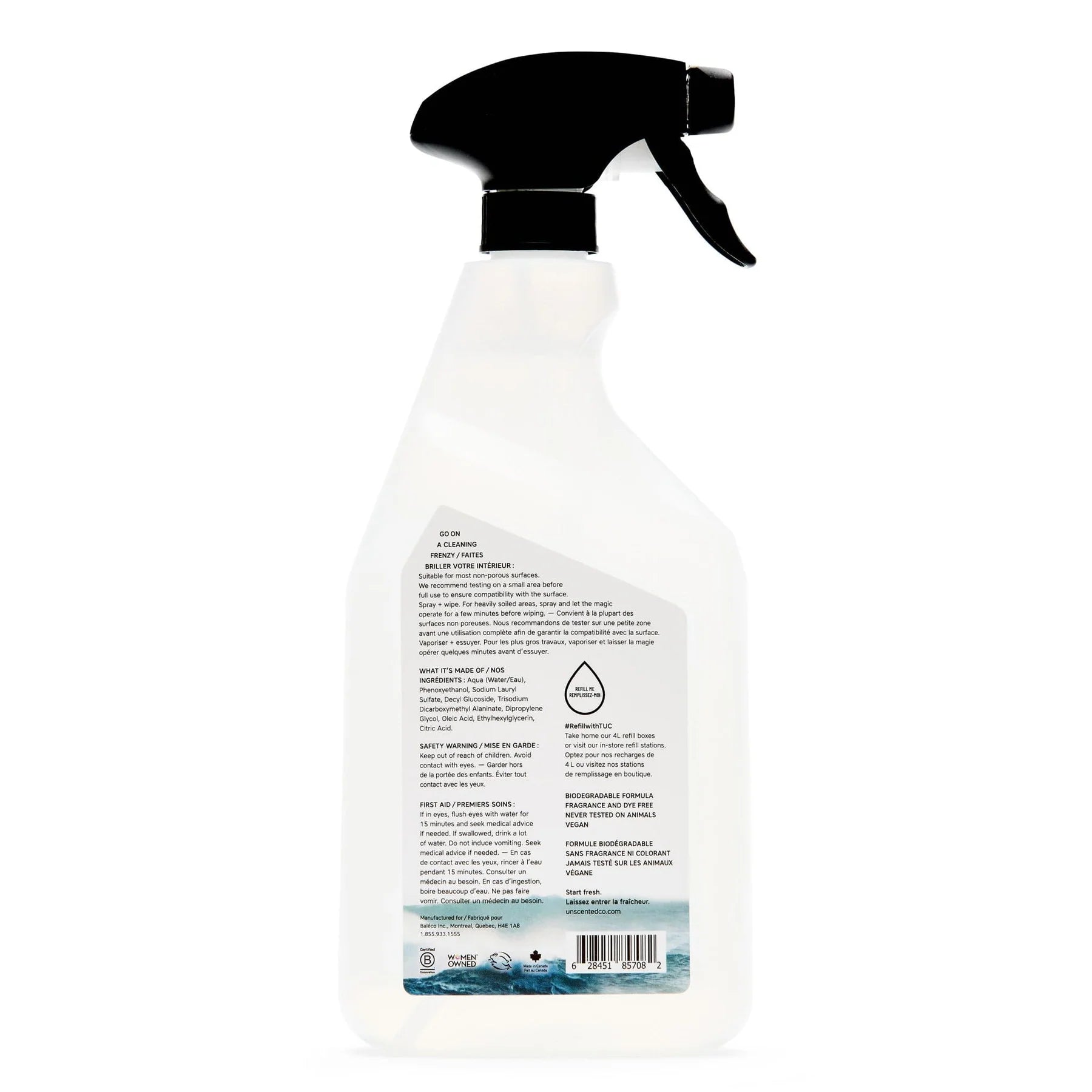 Ce nettoyant tout usage est un incontournable pour les tâches ménagères quotidiennes dans la cuisine, la salle de bain, ou ailleurs dans la maison. Il est l’allié idéal pour attaquer vos corvées ! Sans fragrance, sans colorant ni phosphate.