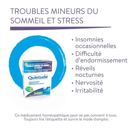 Médicament homéopathique pour les troubles mineurs du sommeil (agitation, difficultés d’endormissement, réveils nocturnes, insomnie occasionnelle) et la nervosité liée au stress (hypersensibilité, irritabilité).