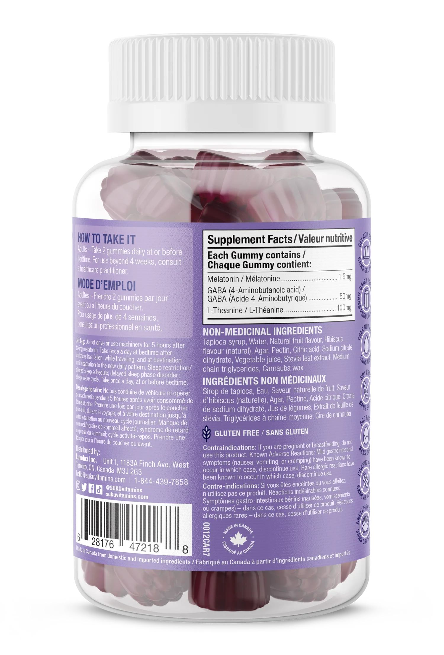 - Ces gommes sont comme des berceuses que vous pouvez réellement goûter. Elles contiennent une combinaison naturelle et efficace de mélatonine, L-théanine et GABA pour favoriser la relaxation, vous aider à vous endormir plus vite et à rester endormi plus longtemps.